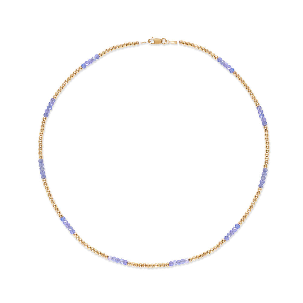 Dainty Tanzanite and gold necklace