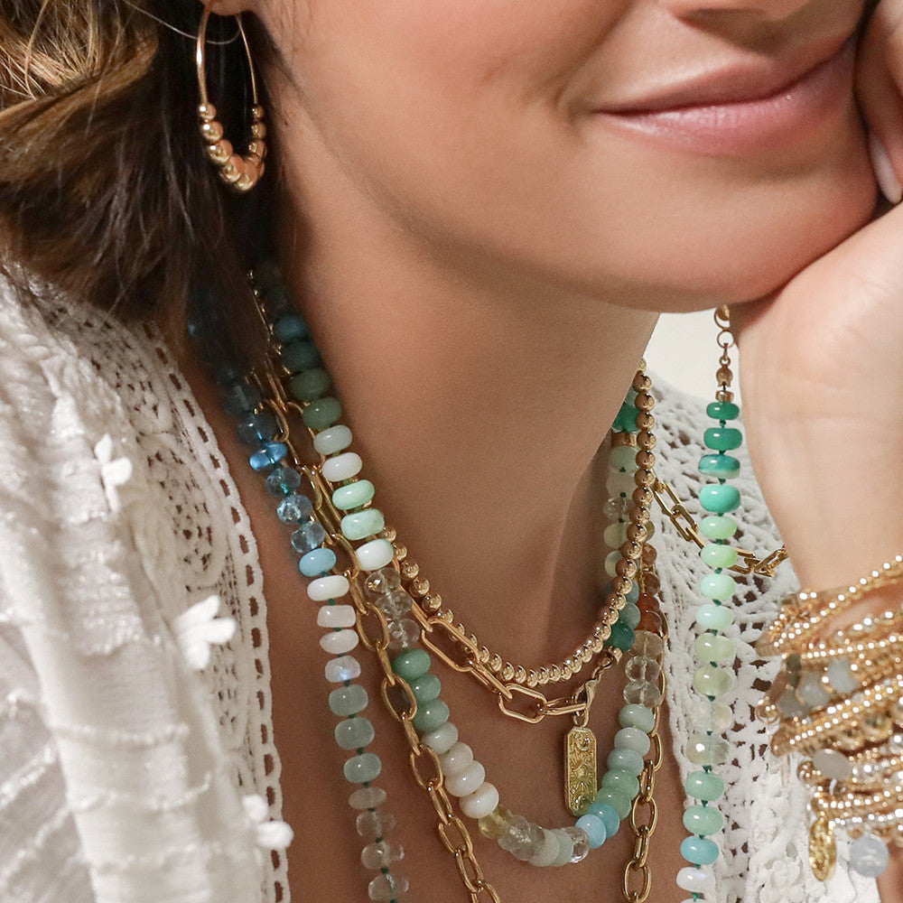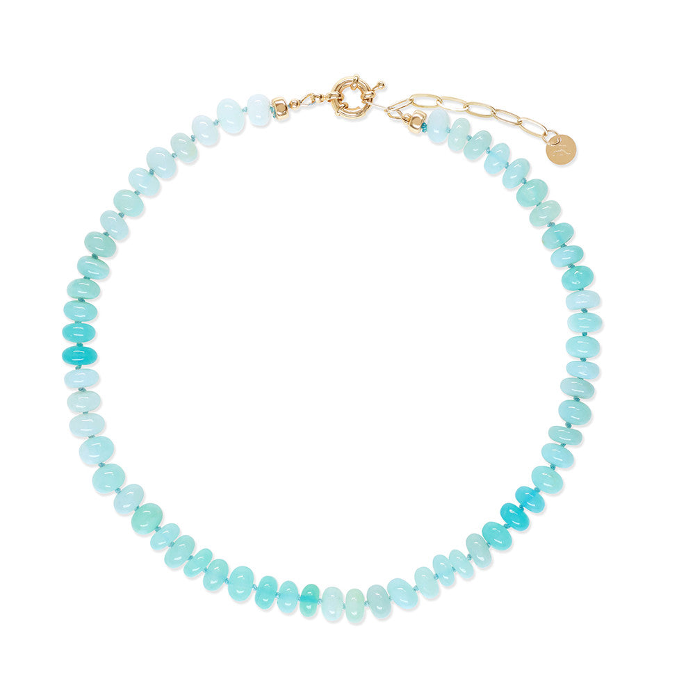 Aqua blue opal and gold necklace