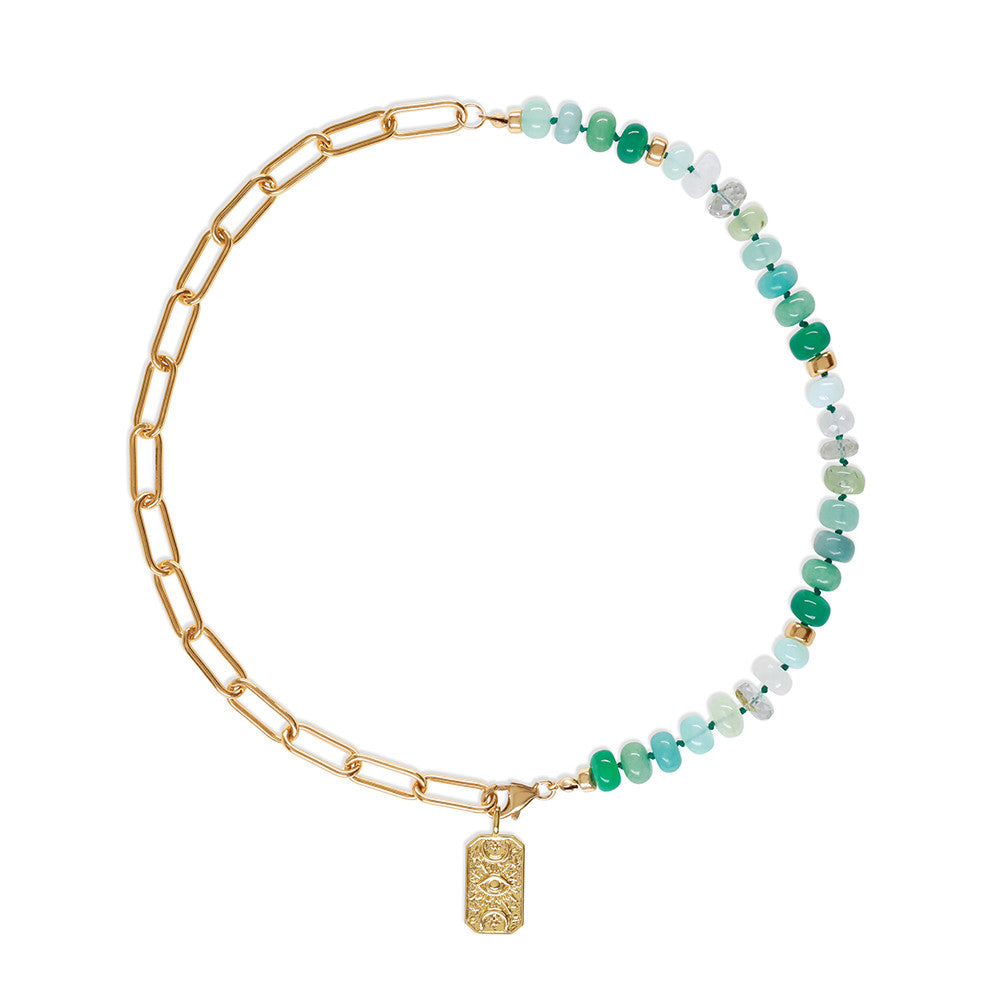 Peacock Green opal and gold necklace